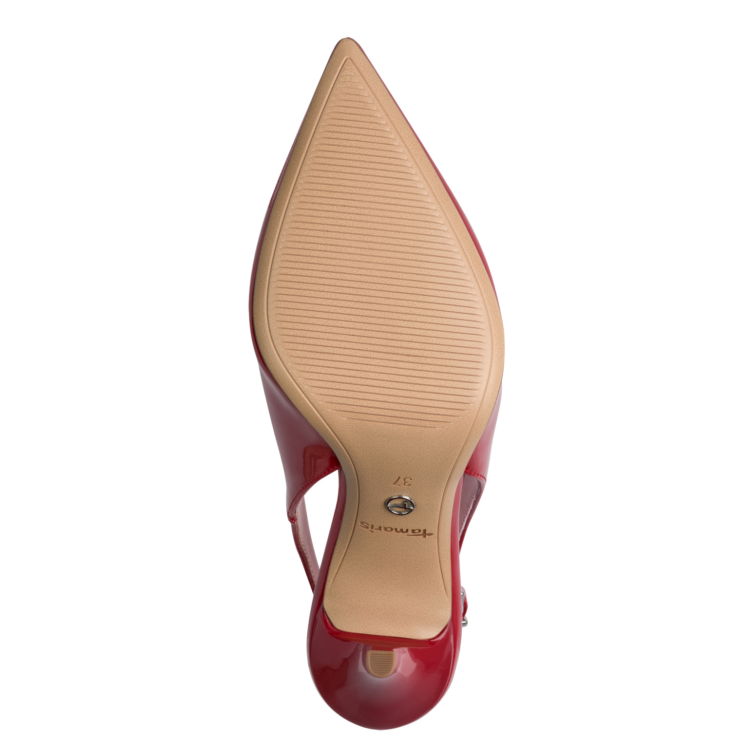 Αυτό το γυναικείο slingback της Tamaris σε έντονο κόκκινο χρώμα αποτελεί την επιτομή της θηλυκότητας και της κομψότητας. Συνδυάζει την κλασική “γόβα” σιλουέτα στο μπροστινό μέρος με την ελευθερία και την άνεση ενός πέδιλου στη φτέρνα.