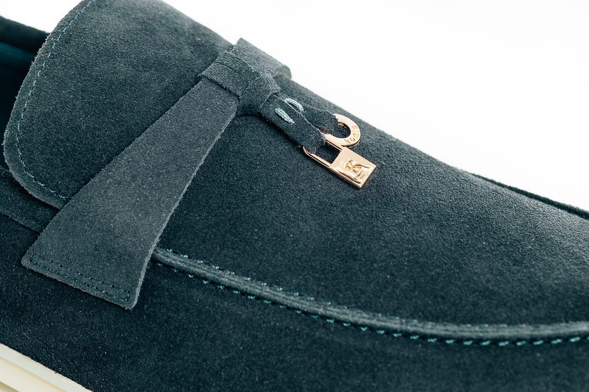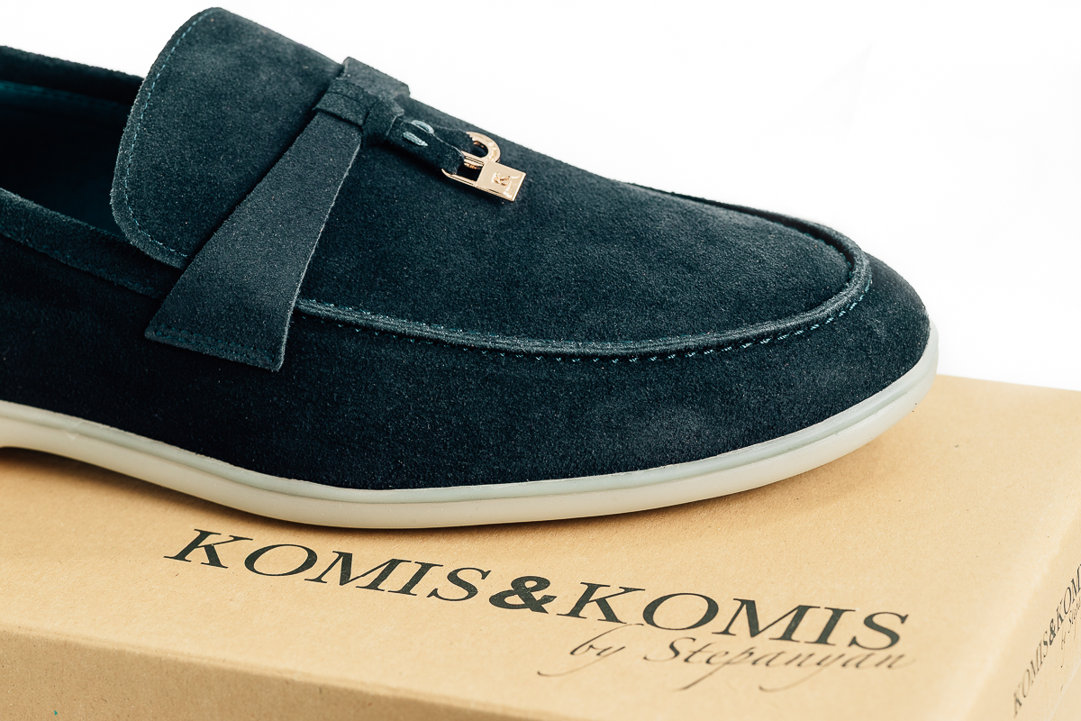 Premium Navy Suede: Το επάνω μέρος είναι κατασκευασμένο από ποιοτικό καστόρι δέρμα σε βαθύ μπλε χρώμα, προσφέροντας μια εξαιρετικά μαλακή υφή και εκλεπτυσμένη όψη.