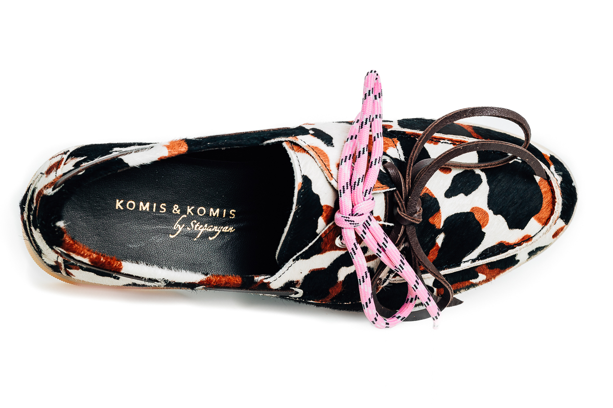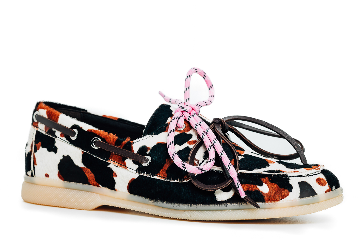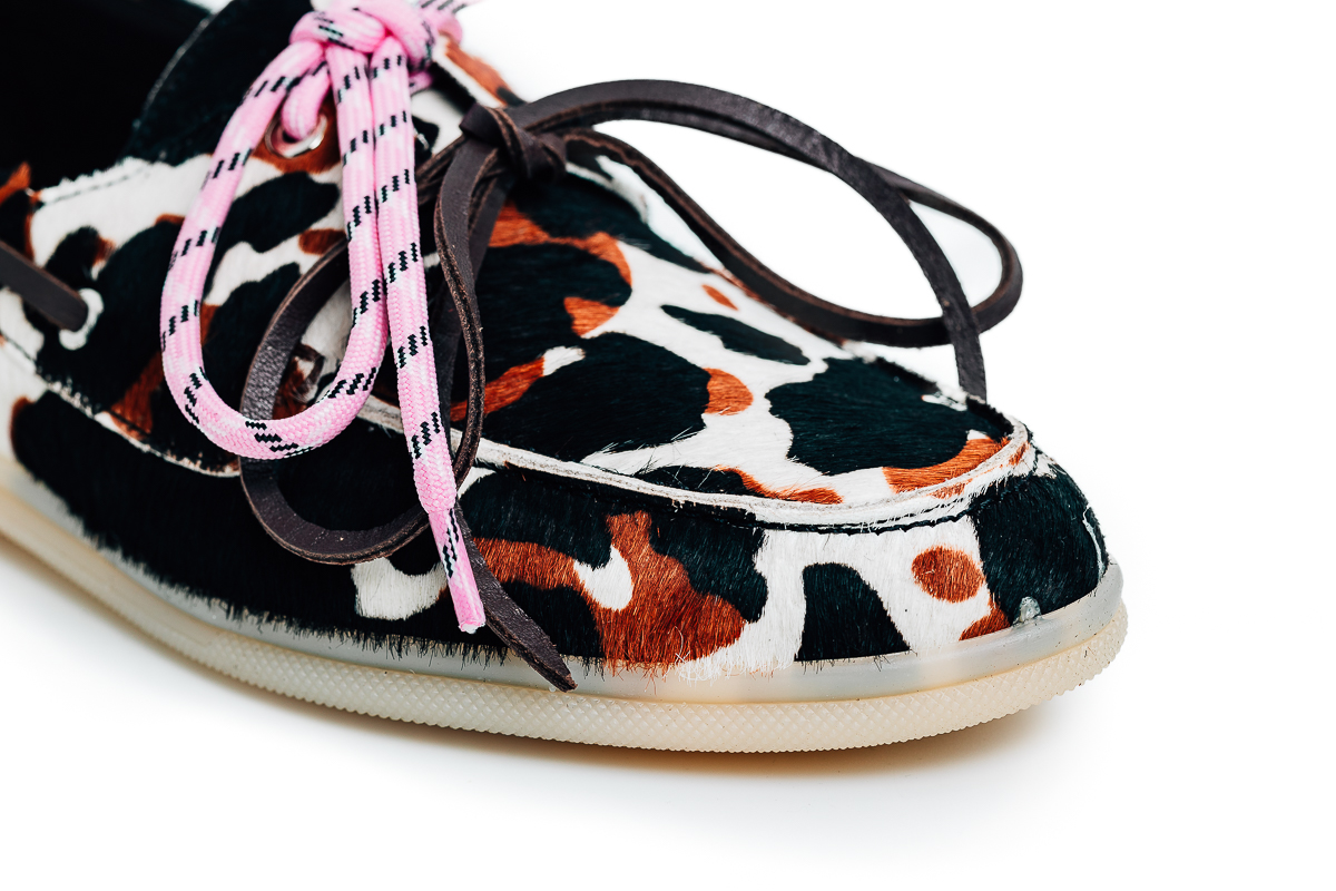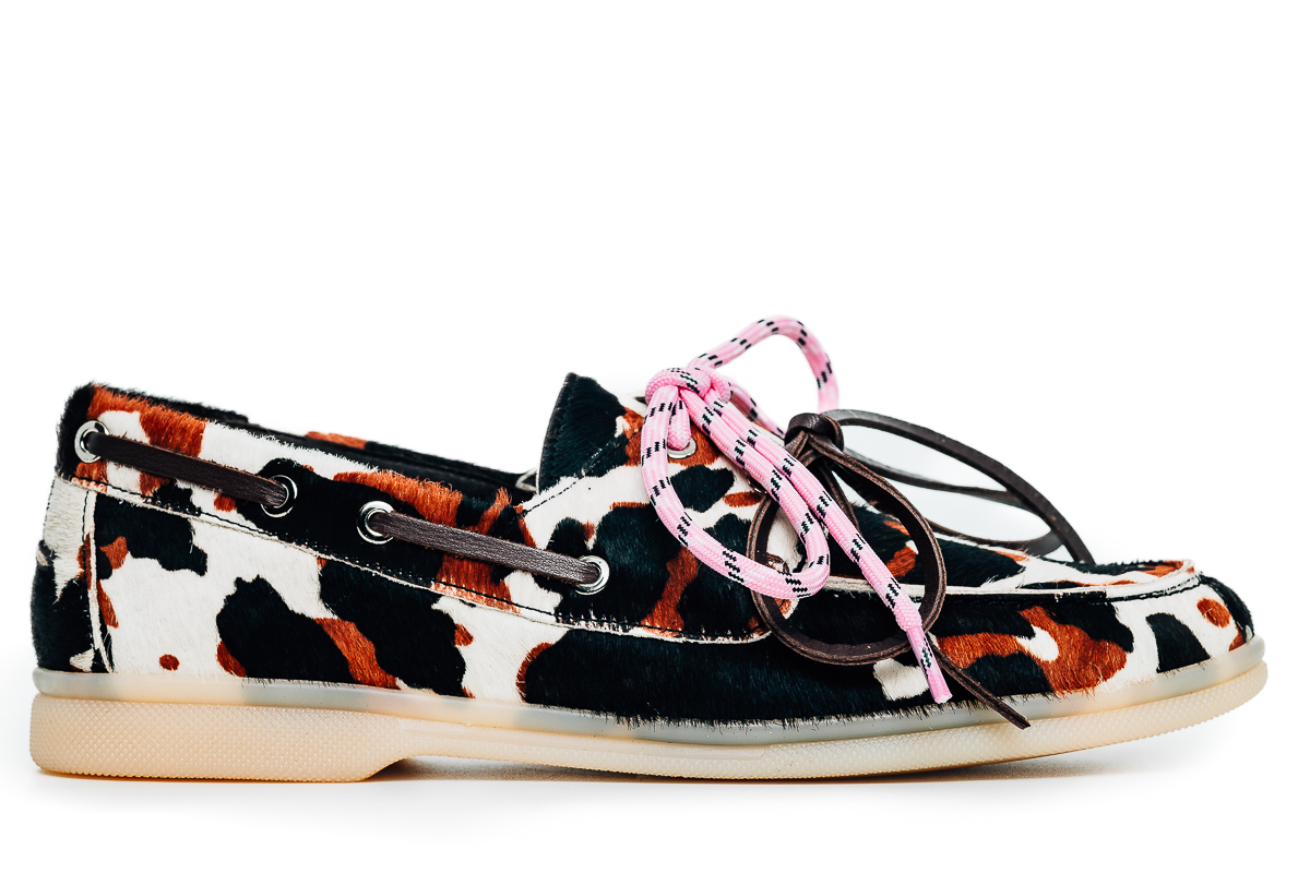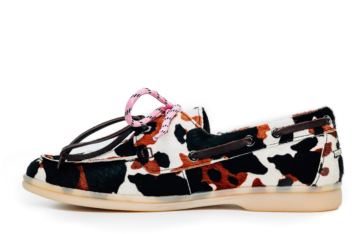 Αυτό το μοκασίνι ξεχωρίζει για τον ιδιαίτερο συνδυασμό χρωμάτων και το “cow print” μοτίβο, προσφέροντας μια μοναδική εναλλακτική στα κλασικά animal prints.