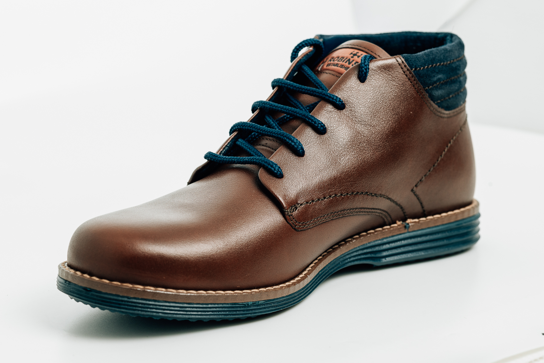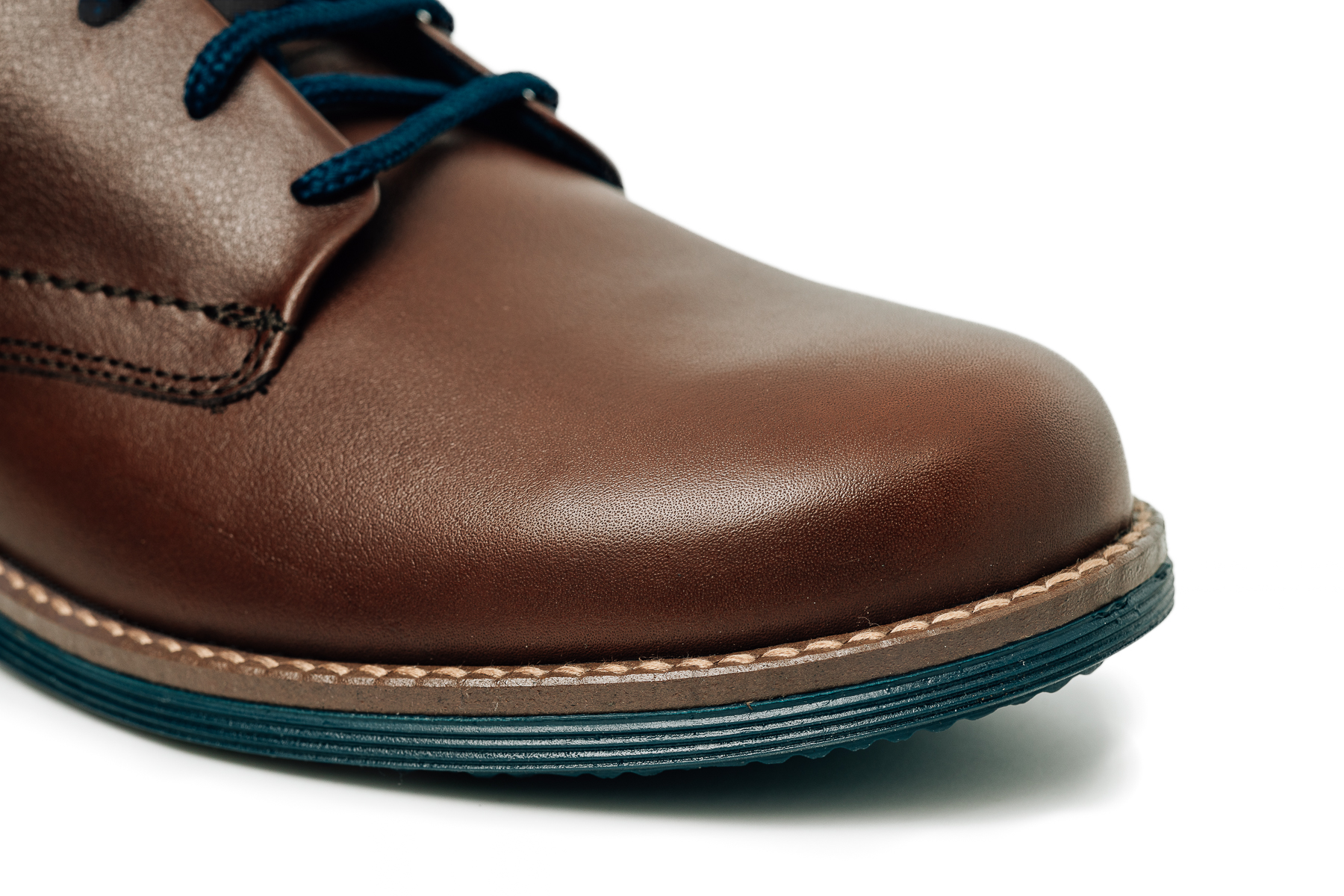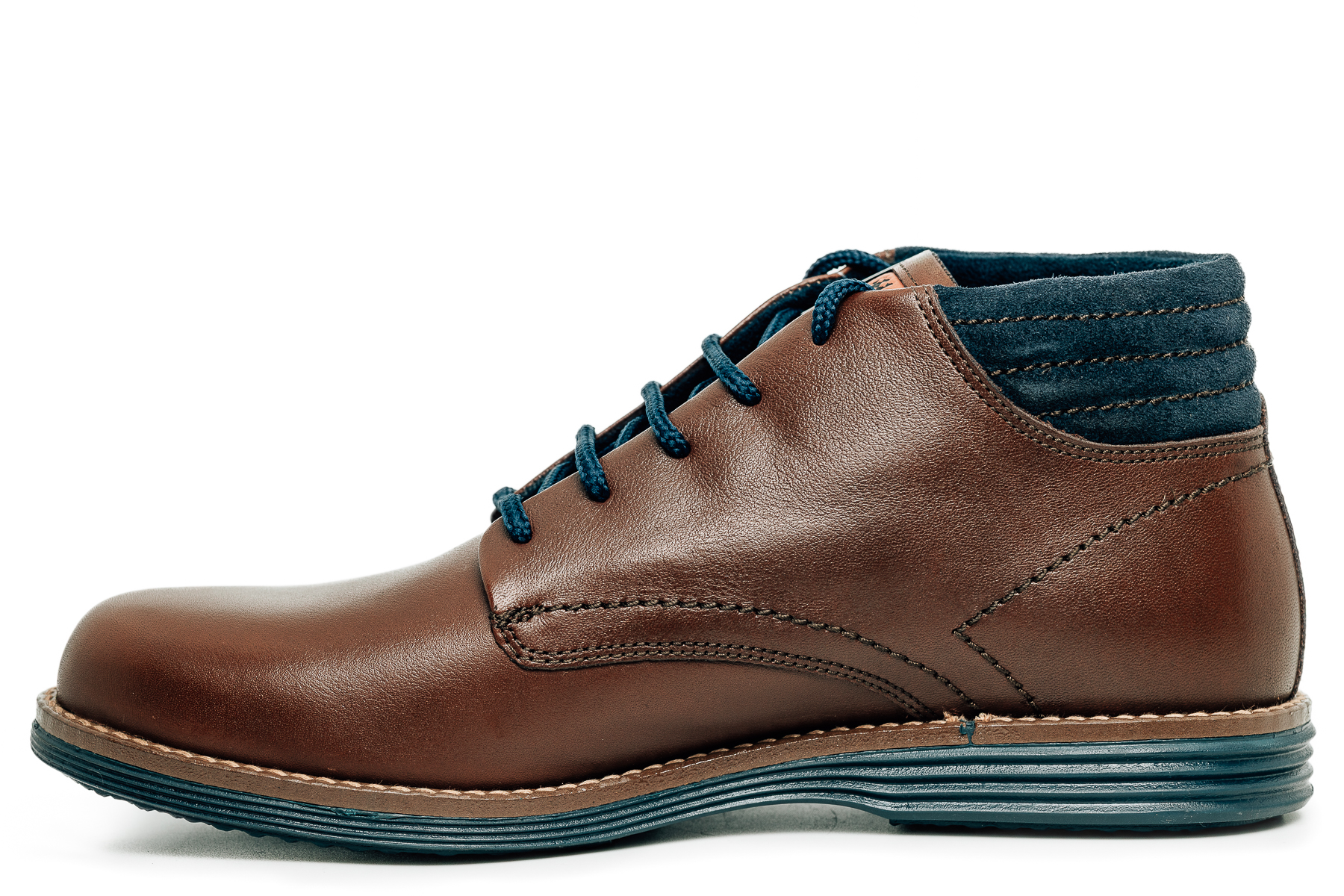 Sporty Lacing: Τα μπλε στρογγυλά κορδόνια δημιουργούν μια κομψή αντίθεση με το καφέ δέρμα, προσδίδοντας έναν σύγχρονο, αθλητικό χαρακτήρα.