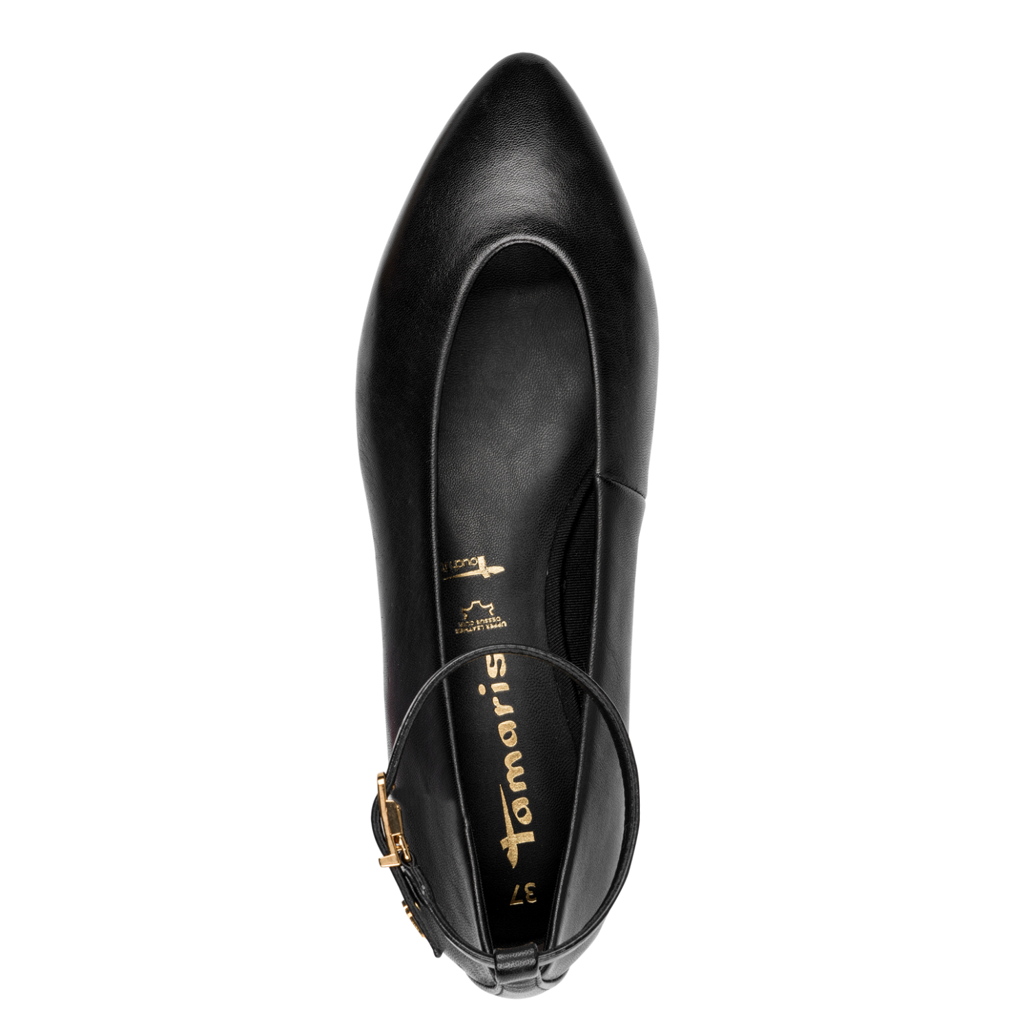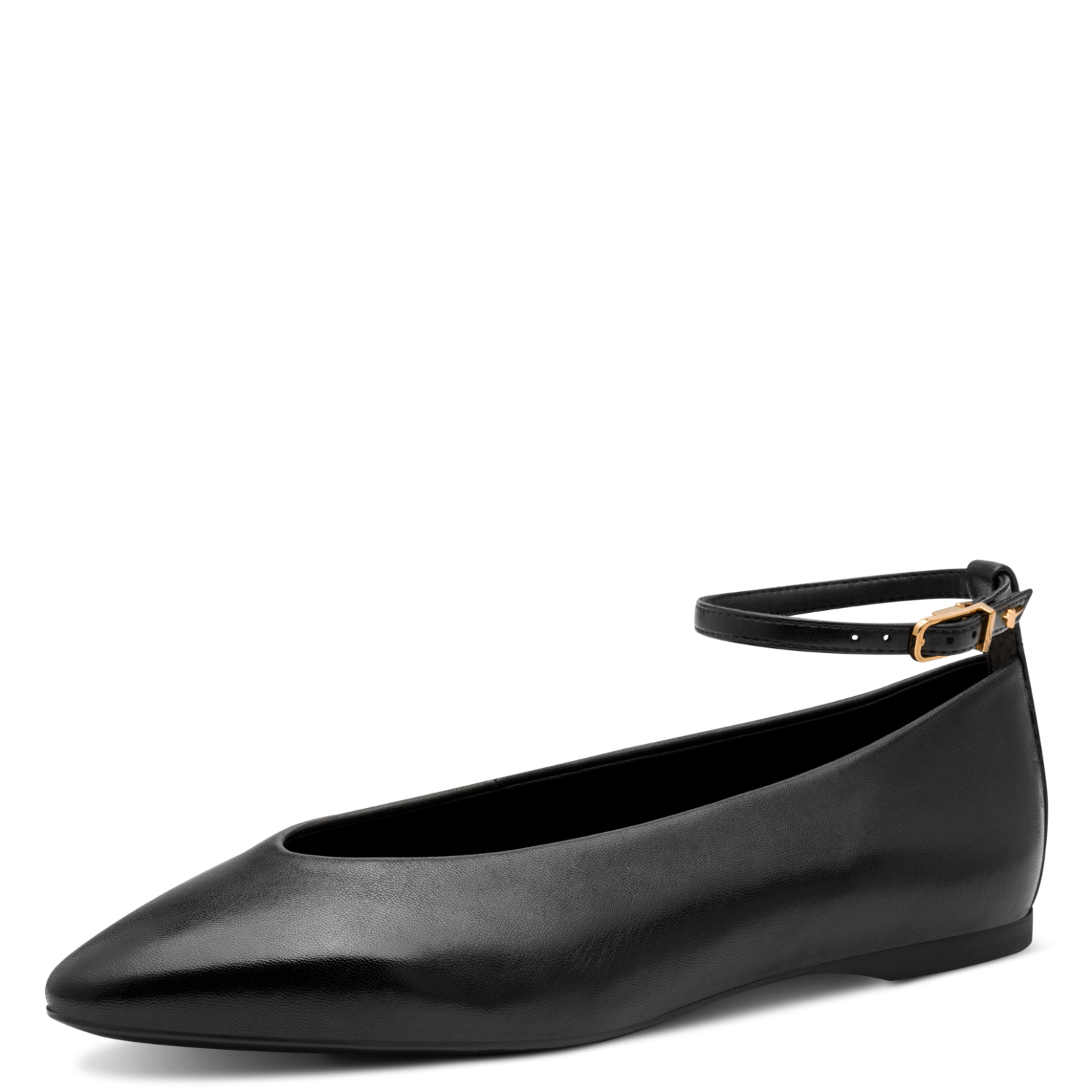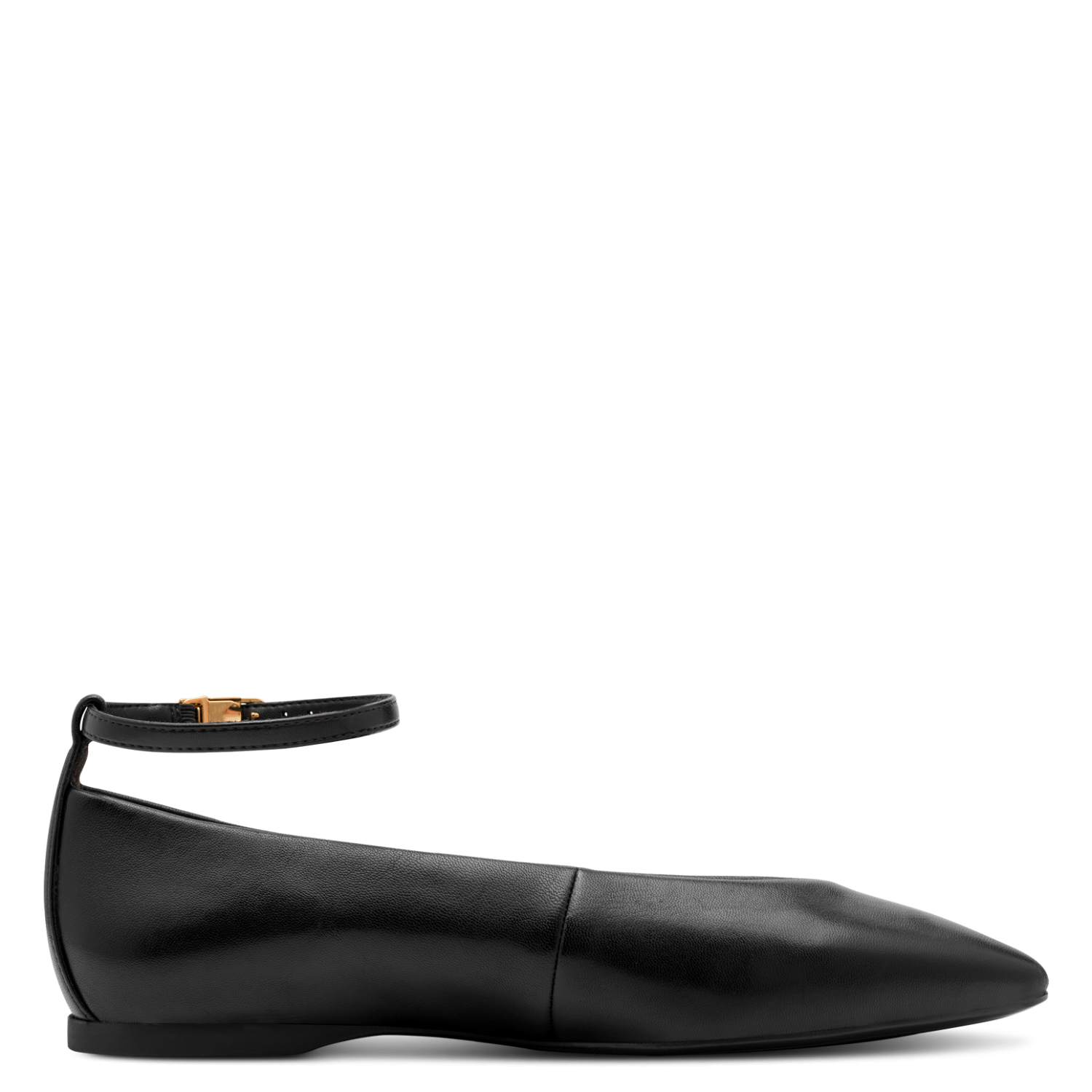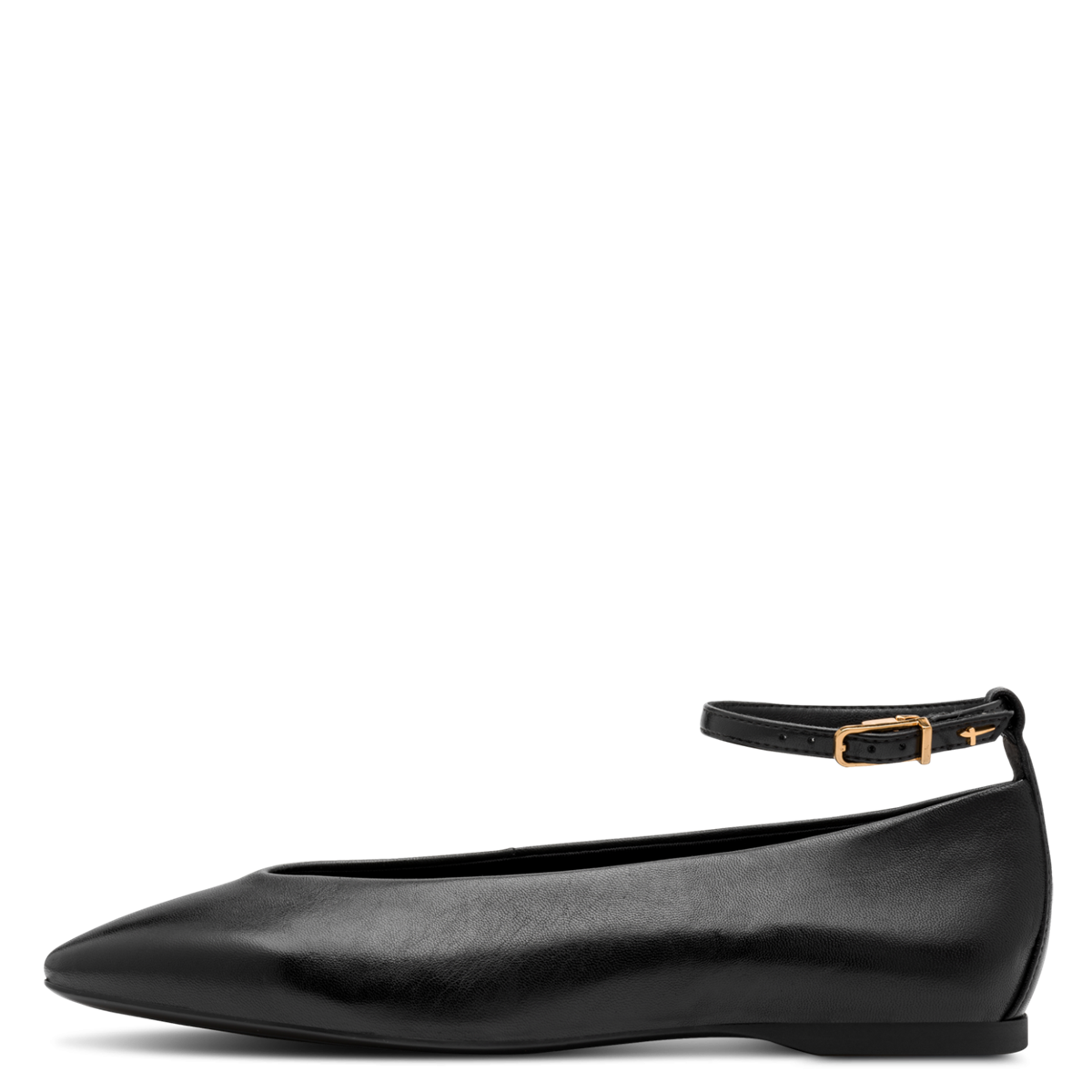 Γυναικεία Δερμάτινη Μπαλαρίνα με Λουράκι στον Αστράγαλο – Μαύρο