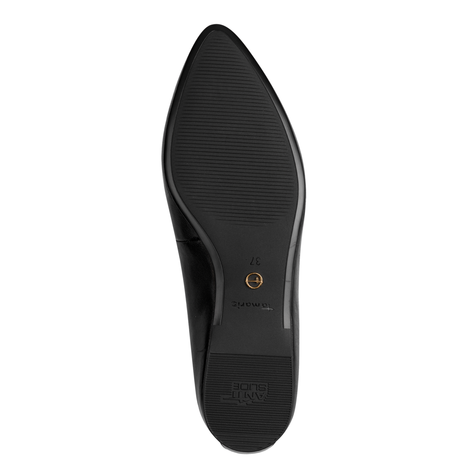 Κομψότητα και άνεση σε κάθε σας βήμα! Η μαύρη δερμάτινη μπαλαρίνα με διακριτικό λουράκι στον αστράγαλο συνδυάζει το διαχρονικό στιλ με τη σύγχρονη φινέτσα. Κατασκευασμένη από υψηλής ποιότητας γνήσιο δέρμα, προσφέρει εξαιρετική εφαρμογή και στυλ που ξεχωρίζει. Το χρυσό μεταλλικό κούμπωμα προσθέτει μια πινελιά πολυτέλειας, ενώ η ελαφριά σόλα εξασφαλίζει άνεση όλη μέρα.