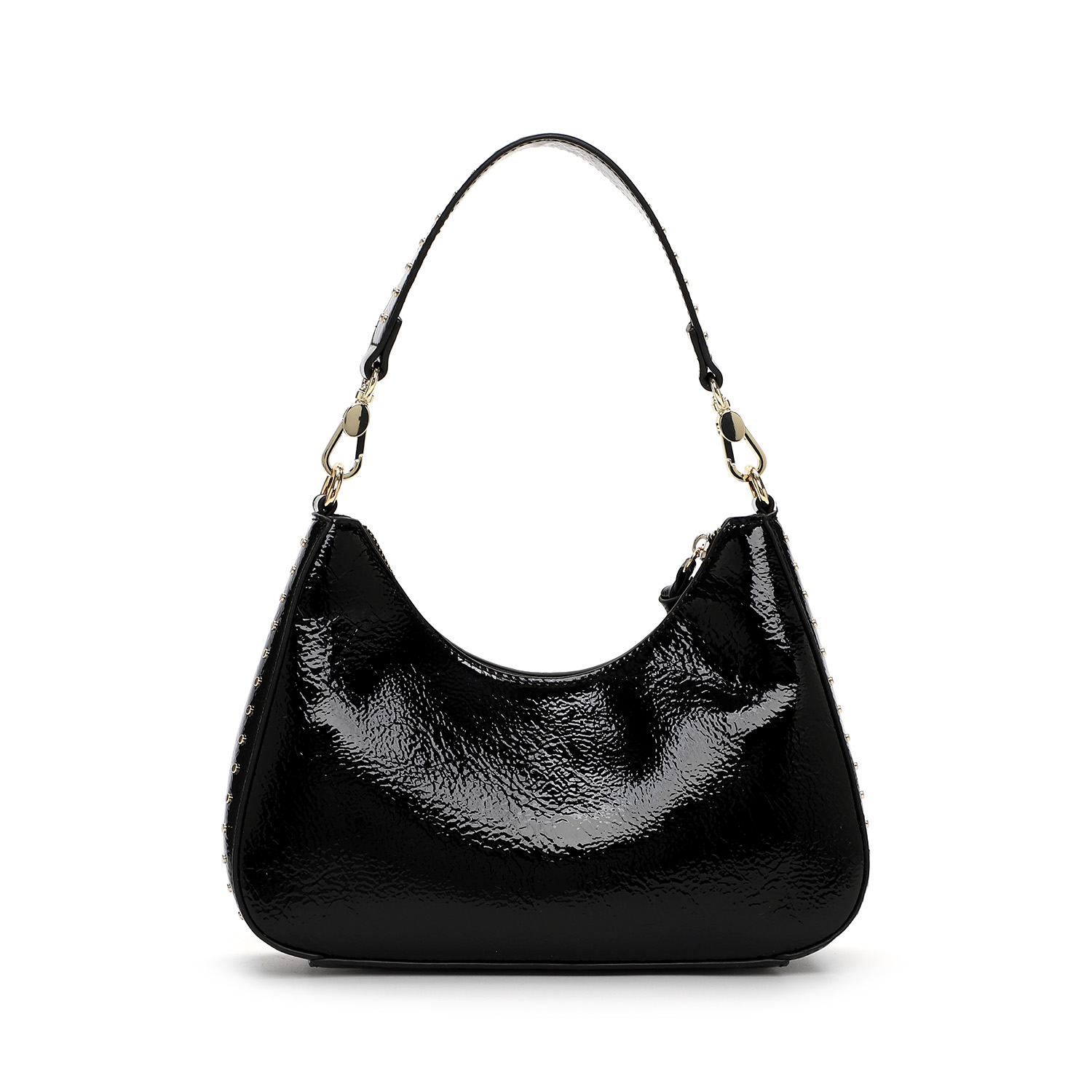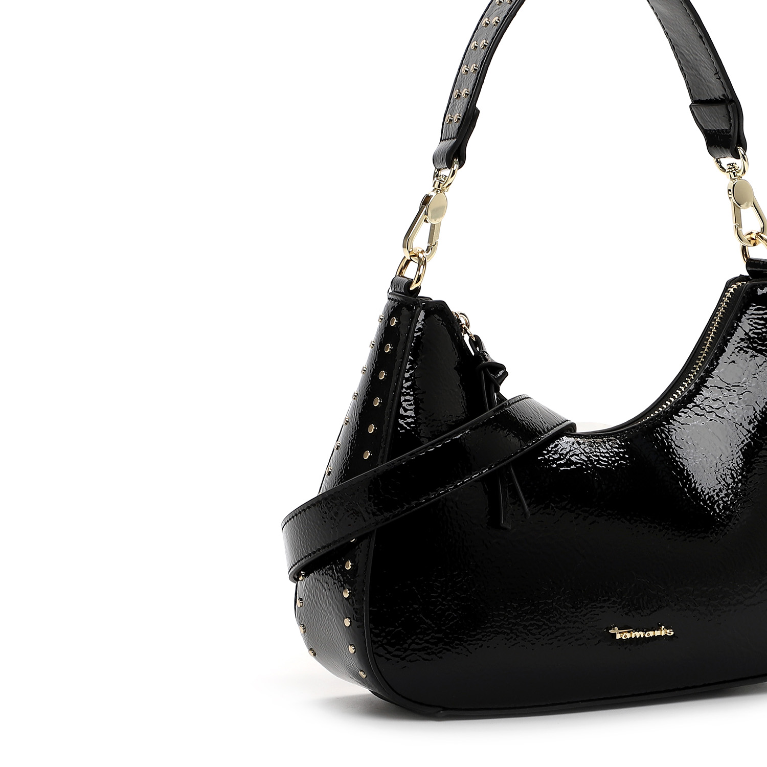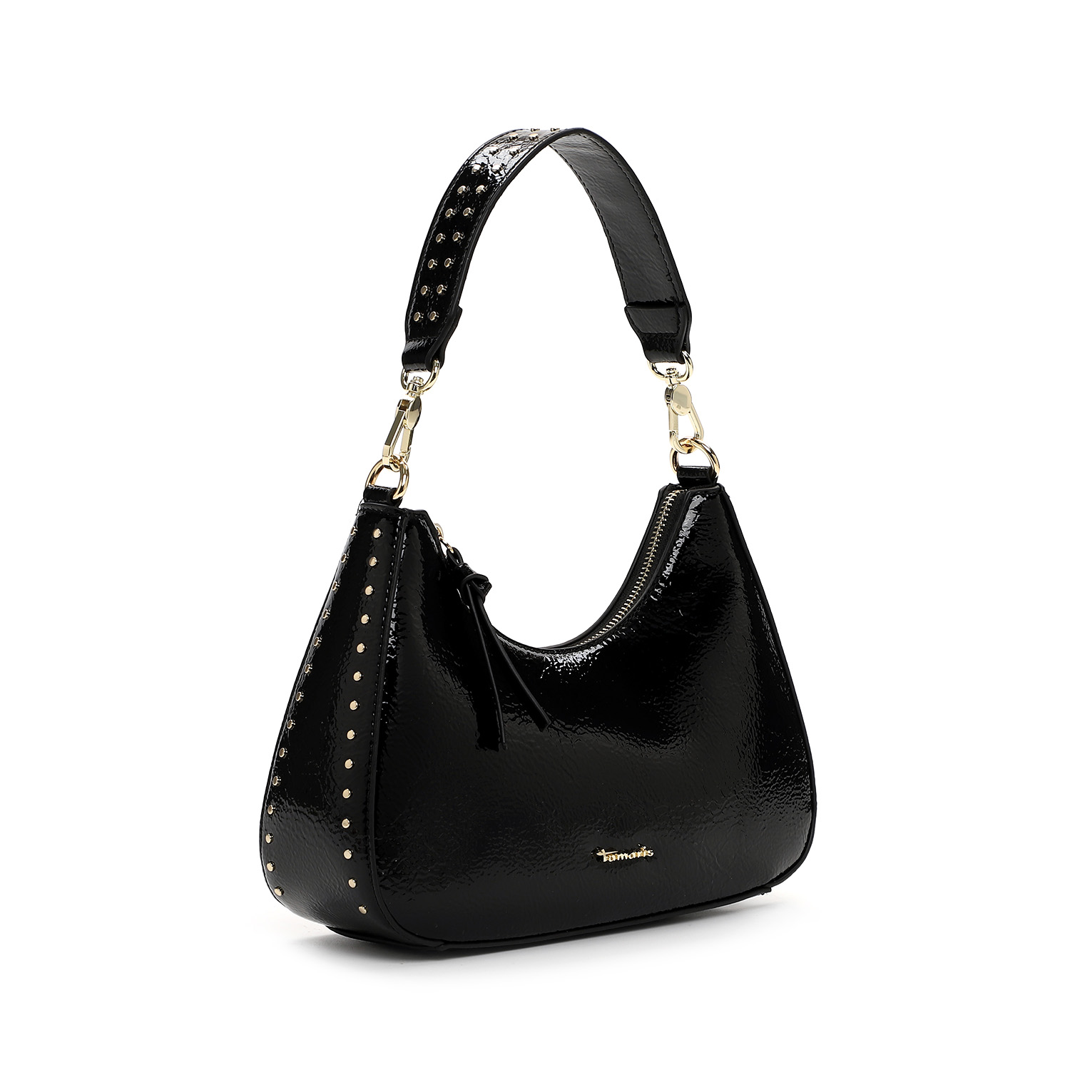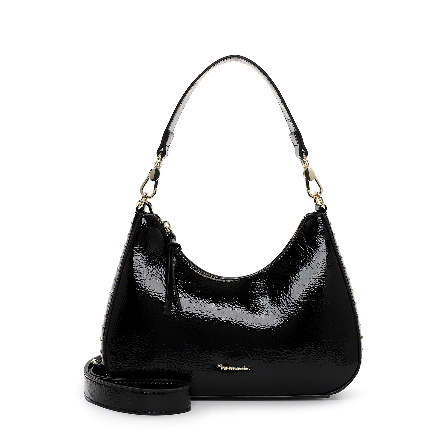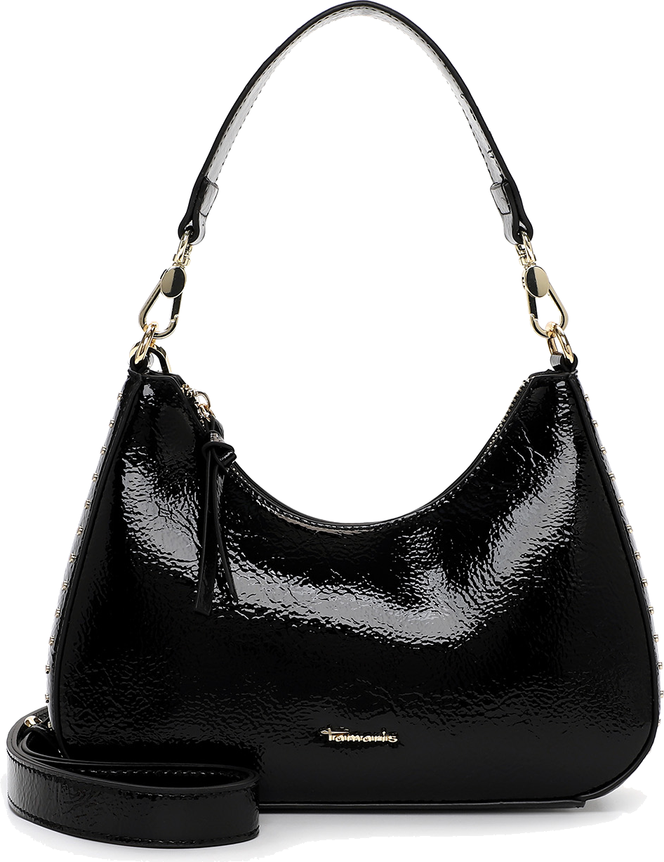 Η κομψότητα συναντά τη μοντέρνα αισθητική με αυτή τη μαύρη τσάντα ώμου Tamaris. Κατασκευασμένη από γυαλιστερό συνθετικό υλικό, αποπνέει πολυτέλεια και δυναμισμό. Οι διακριτικές χρυσές λεπτομέρειες και τα μικρά τρουκς προσδίδουν μία fashionable πινελιά, ενώ το αποσπώμενο λουρί επιτρέπει να τη φορέσετε και ως crossbody.