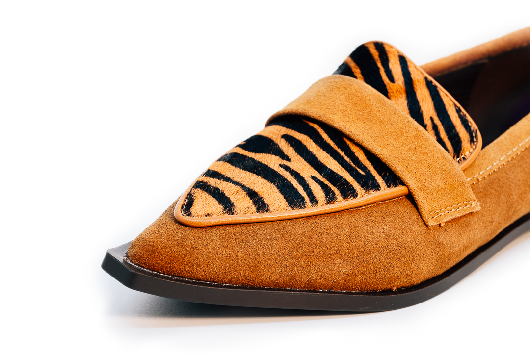 Ανακαλύψτε την απόλυτη κομψότητα με αυτά τα γυναικεία Loafer , σχεδιασμένα για να προσφέρουν στυλ και άνεση. Κατασκευασμένα από εξαιρετικής ποιότητας σουέντ, διαθέτουν τολμηρό σχέδιο τίγρης στο πάνω μέρος, το οποίο προσφέρει μια εκρηκτική αντίθεση με τις ζεστές μπεζ αποχρώσεις του σουέντ. Με την άψογη εφαρμογή και τον μοντέρνο σχεδιασμό τους, είναι ιδανικά για κάθε περίσταση, από casual μέχρι πιο επίσημες εμφανίσεις.