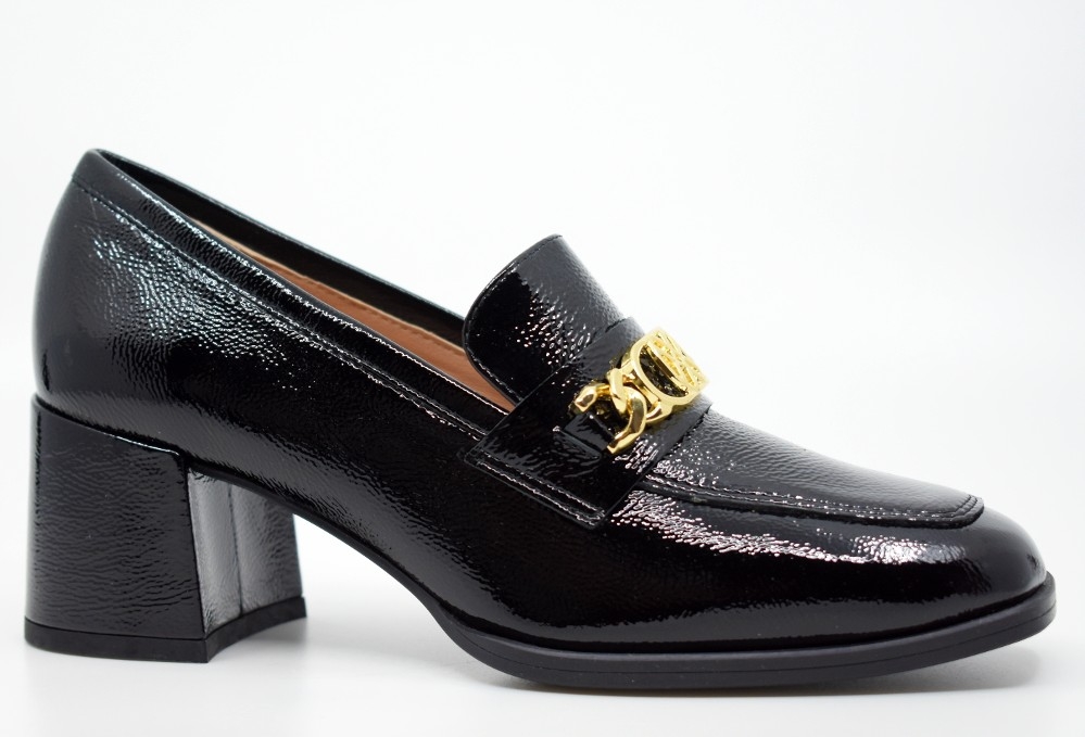 Unisa γυναικείο δερμάτινο loafer με χαμηλό τακούνι σε χρώμα μαύρο λουστρίνι Megan F23 Pcr Black patent Cri